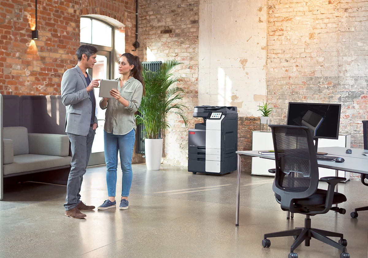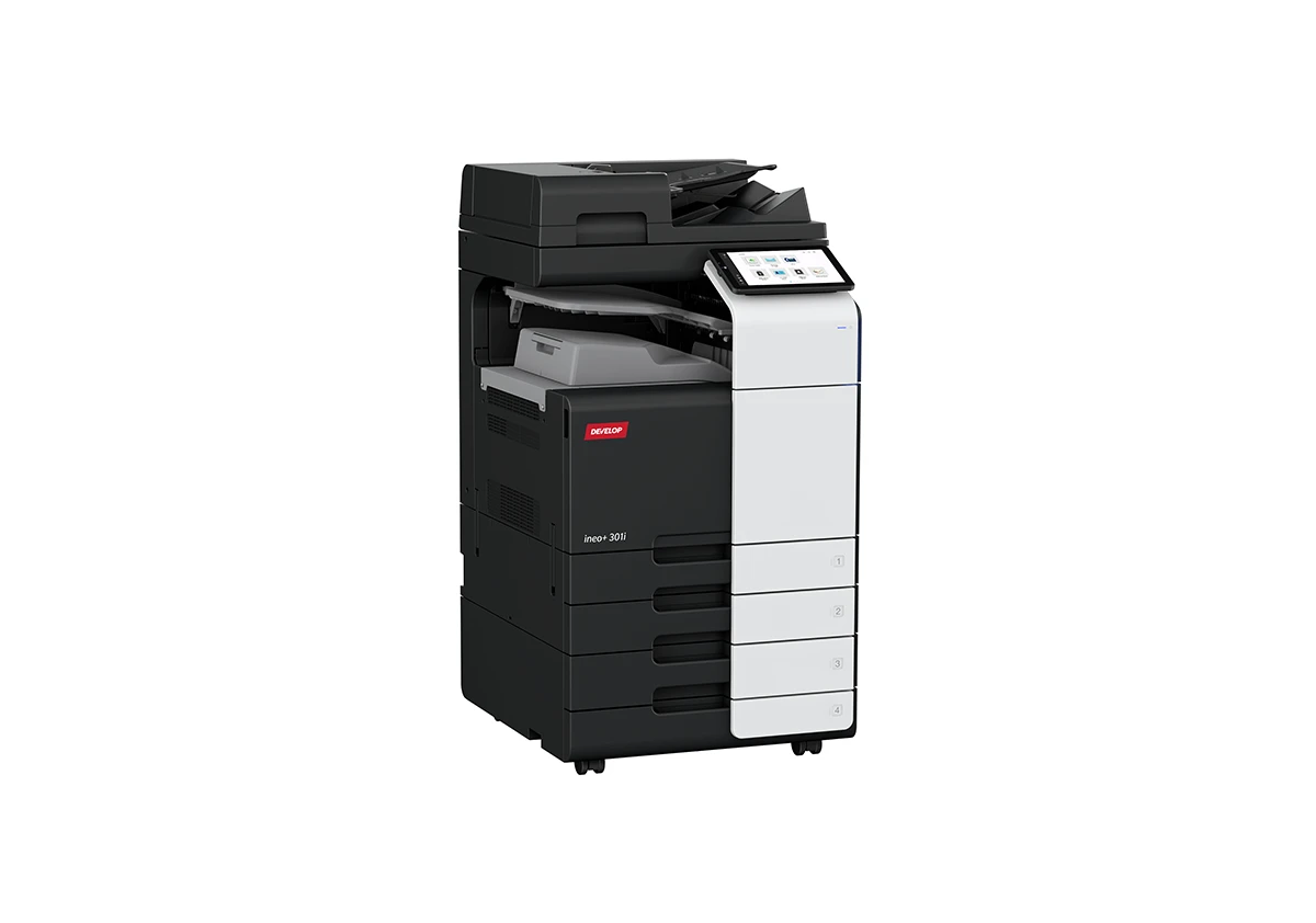 Barevné multifunkční zařízení (tiskárna, kopírka, skener) formátu A3 s rychlostí 30/30 str./min černobíle a barevně.